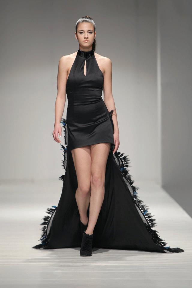 Collection “Heritage”. The inspiration for the collection is tradition, national heritage and the nature of Macedonia. Although it is an inspiration evoked by heritage and tradition, still the collection is elegant and modern. It is consisted of eleven formal evening dresses, specific by their unique manufacture. Some of the dresses are fully handmade while the others have details manually crafted on them. These dresses are intended for a modern woman who will identify herself with these elegant fashion pieces. Colours which prevail are the black, brown, blue and white. Only the dress which will open the show is in a red colour because it represents an introduction to the collection theme.